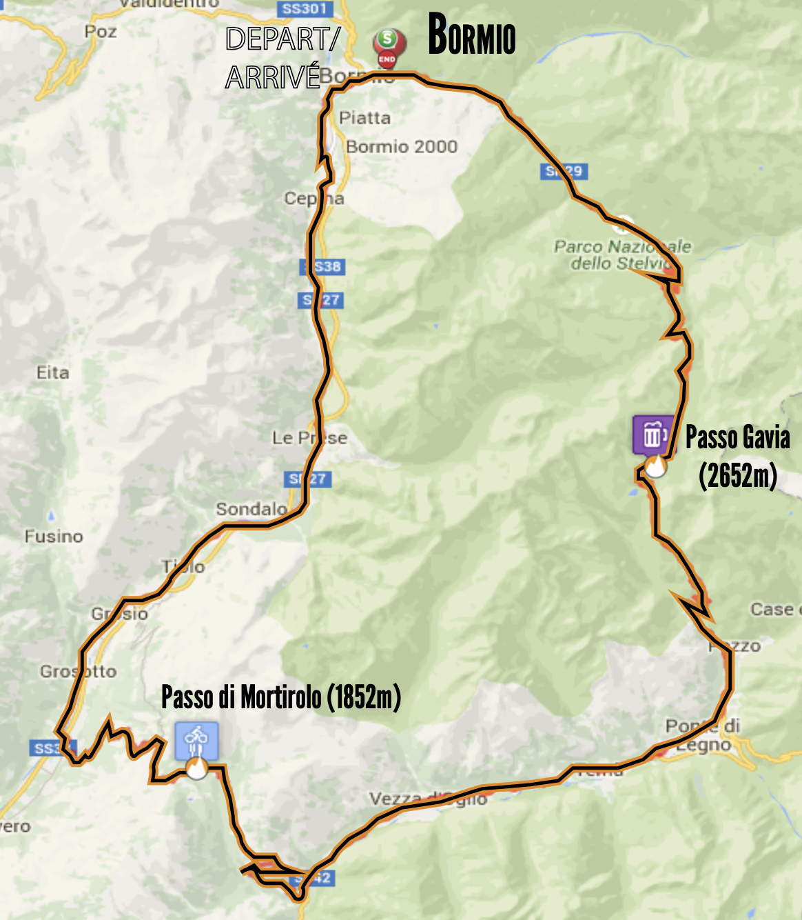 Two more iconic climbs and one of the steepest anywhere but totally enjoyable. The Mortirolo is first followed closely by the Gavia.